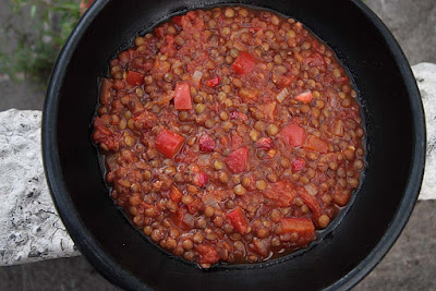 You may be interested to note that there is a company in Japan that actually sells Strawberry Curry, but it comes in a packet. I assure you this one is home made and not fruity sweet at all. It made for a nice change from the traditional Indian style Dal. You can even eat this curry as a Soup or stew if you want, its quite versatile. If you don't have Puy lentils feel free to substitute it with green lentils. For more unusual Strawberry recipes see here.