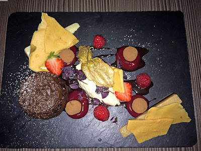 Molten Chocolate Pudding with salted caramel sauce, truffles, vanilla ice-cream and lots of other components that were absolutely delightful.