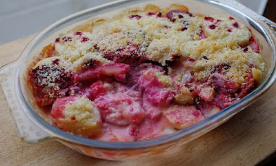 DeleteI love potato gratin with horseradish. Wouldn't have thought of using beetroot in it before. Looks lovely #bakeoftheweek