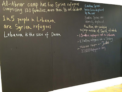 This is a UK based initiative. The exhibition shared artwork created by Syrian children living in refugee camps in Lebanon. Here are some pictures I took on that day.