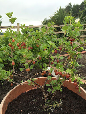 Look closely at the photograph above, you will see half of it is raspberries and the other half red gooseberries. If you want sweet, go for the raspberries, if you want sharp go for the red gooseberries.