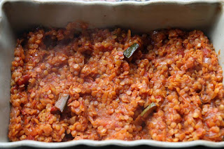Please don't go 'Ugh - Lentil and Pasta - how boring'. I've made a Lentil Pasta before and the lentils lends itself wonderfully as a sleek sauce. You can describe this Mango Lentil Pasta Bake as a Spiced up version of Macaroni Cheese. I know the mango pickle sounds strange in a creamy cheesy dish, but take my word for it, it really works. One of my absolute favourite recipes using Mango pickle is my Dads Achari Aloo (Mango Pickled Roast Potatoes). The mango pickle is sharp and lifts the creamy element of the pasta which I would normally find just bland. The cooked lentils also retained a little bite giving this pasta bake texture. I especially liked the golden topping and thoroughly enjoyed breaking into the crispy exterior with my fork. You could just eat the Red Lentil Mango Dal as it is too,if you so wish.