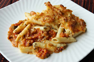 Now make the past bake topping: bring a large pan of salted water to the boil, add the penne and cook according to packet instructions or until al dente. Drain and set aside.