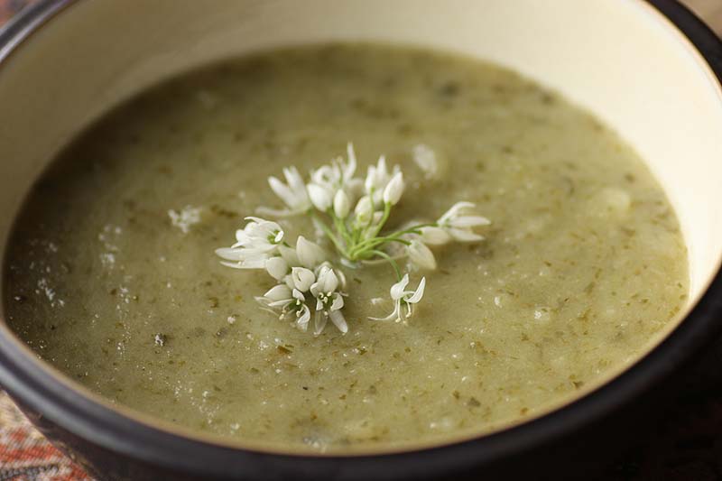On our way back, I had seen more wild garlic, this time much of it had flowered and the leaves were thick. Of course, I could have easily picked up a fresh bunch, but I decided not to as I already had some wild garlic soup made at home from my pickings last week. However, I did pick a couple of wild garlic flower heads so that I could garnish my soup. The flower heads proudly standing on a thin green stem reminded me of sparkles children proudly whirl on Bonfire night. It even reminded me of those that sometimes dress up a cocktail drink.