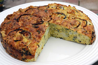 It reminded me of lots of different recipes, but combined into one hearty compact savoury cake. First it reminded me of one of my own recipes for a Cauliflower Terrine. Then the Italian Cauliflower Sformato, the Afghanistan Egg Torte known as Khagina, the Algerian Markode, the Kookoo in Iran, and of course a Quiche. My nephew even described it a little of cauliflower pakora's, even the Gujrati dhokla. I can see what he means.