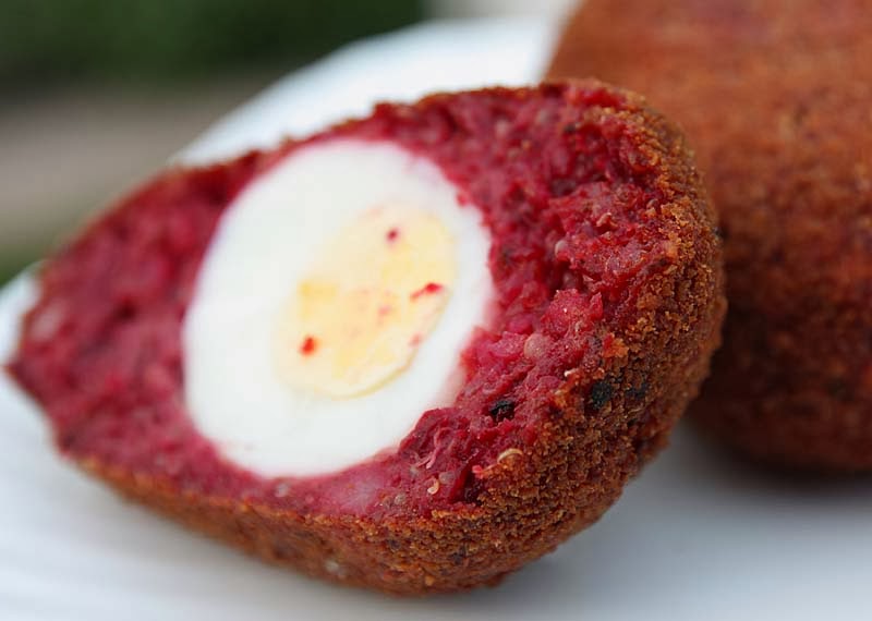 Deletei am not a fan of scotch eggs BUT i totally love the fact that you have incoporated beetroot into your recipe - they look so unusual and attractive x